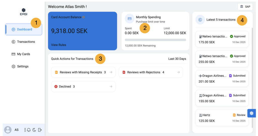 Cardholder can view their spend graph related to amounts allotted to them, view rules , access transaction details which are of priority in terms of task