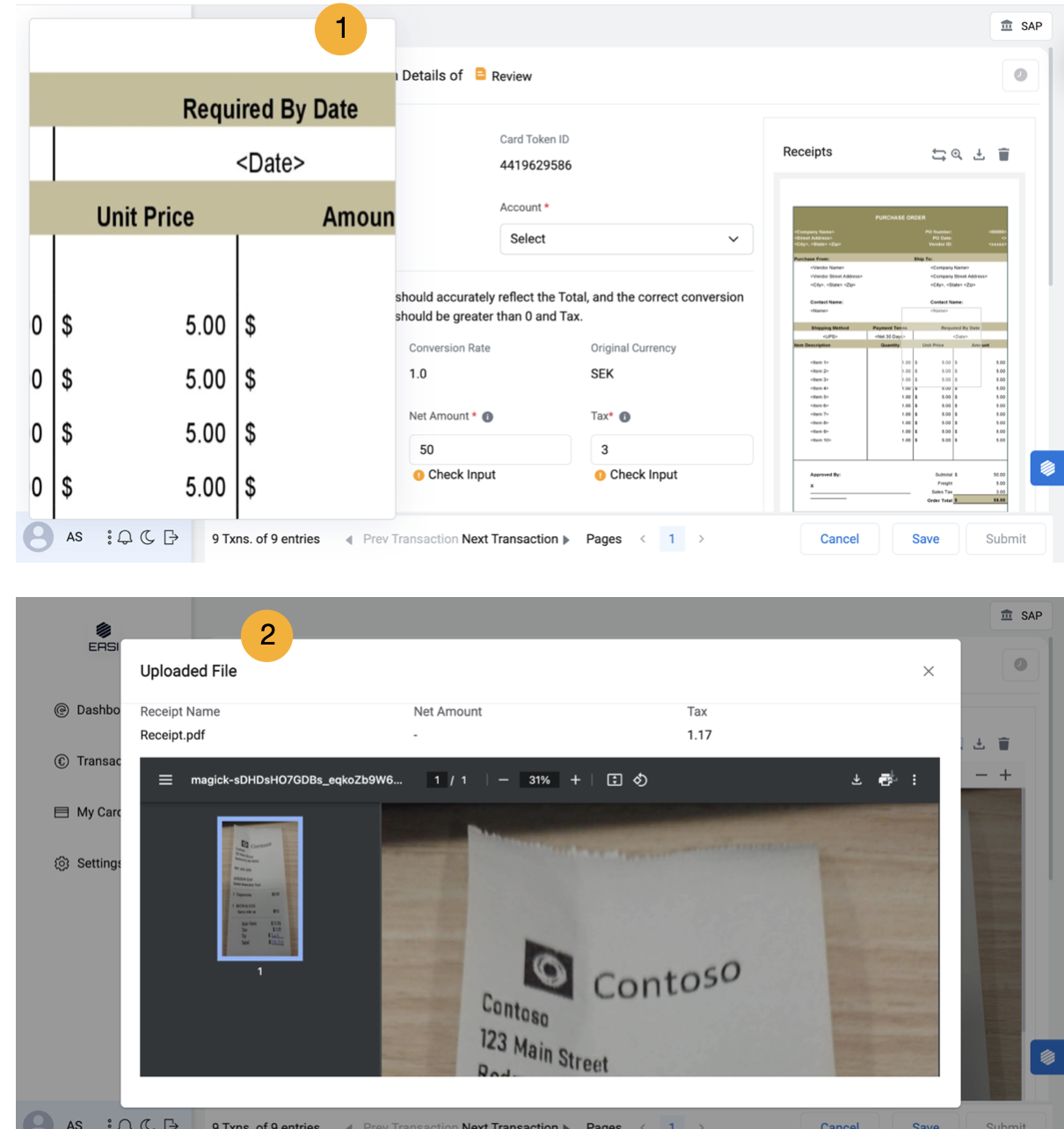 Hovering over the receipt image will display a magnified portion for enhanced clarity, as needed.