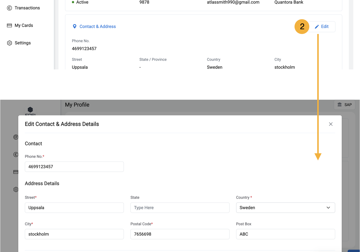 ii.Upon clicking “Edit”, the “Edit Contact & Address Details” modal window will pop up.