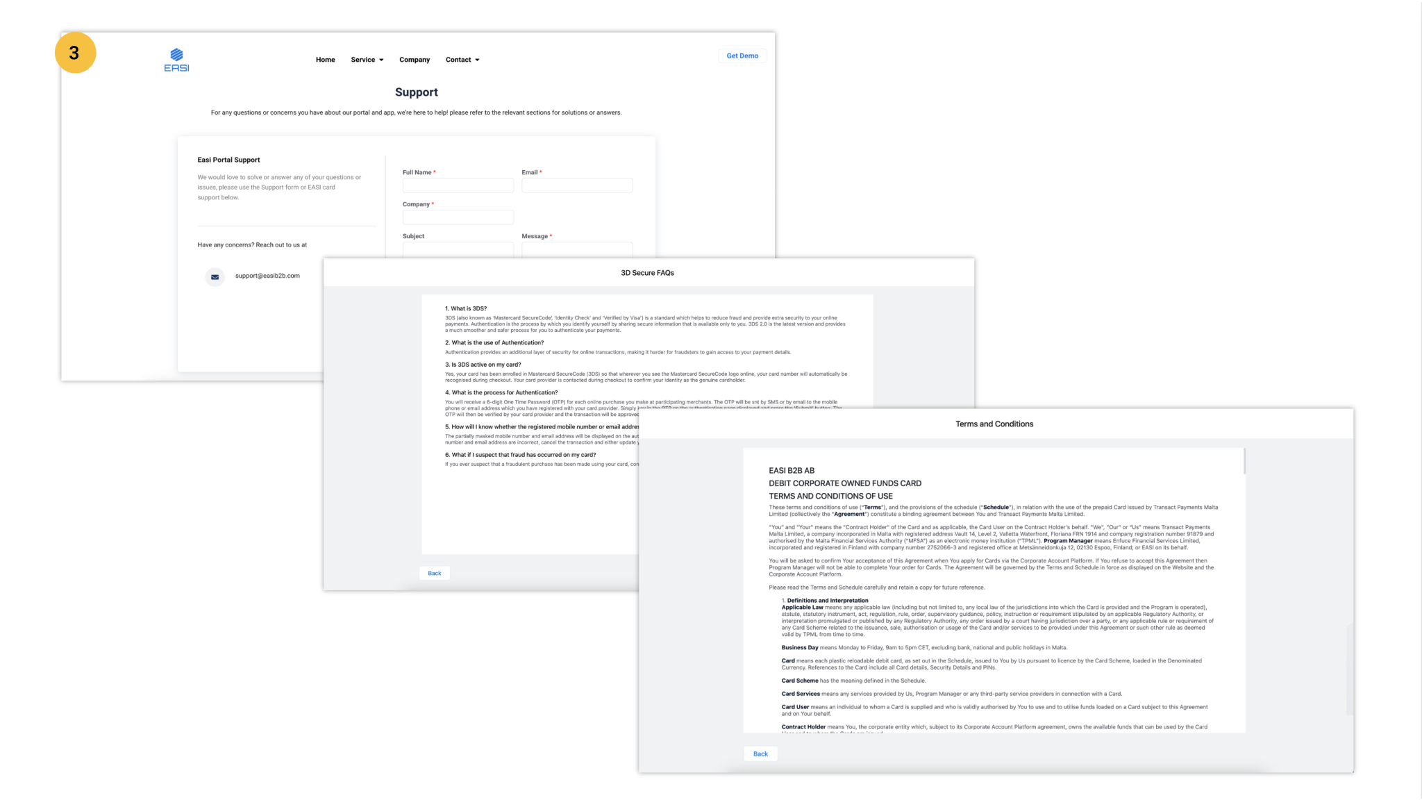 The 3D Secure FAQs and Terms & Conditions sections are available directly within the portal.