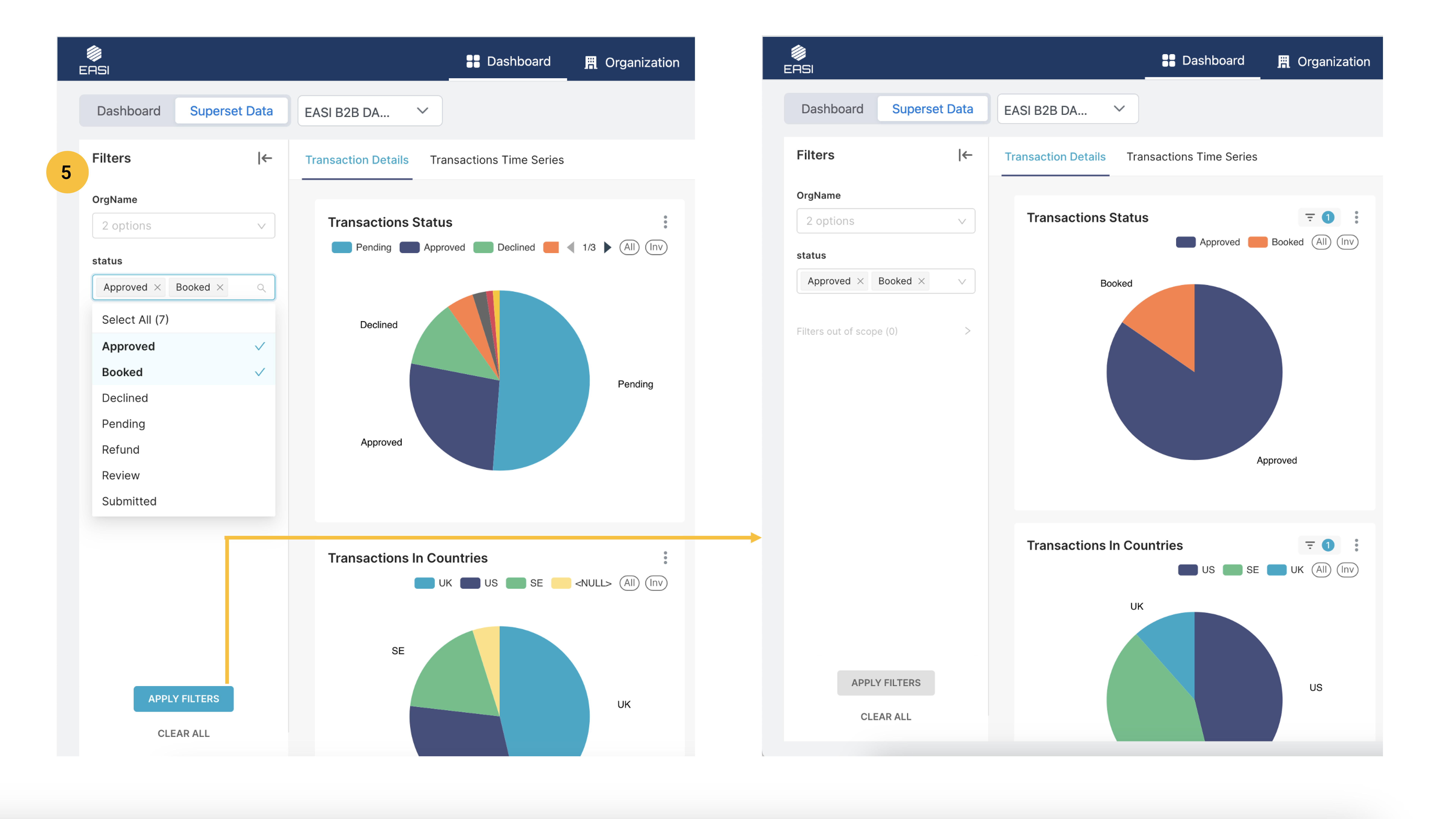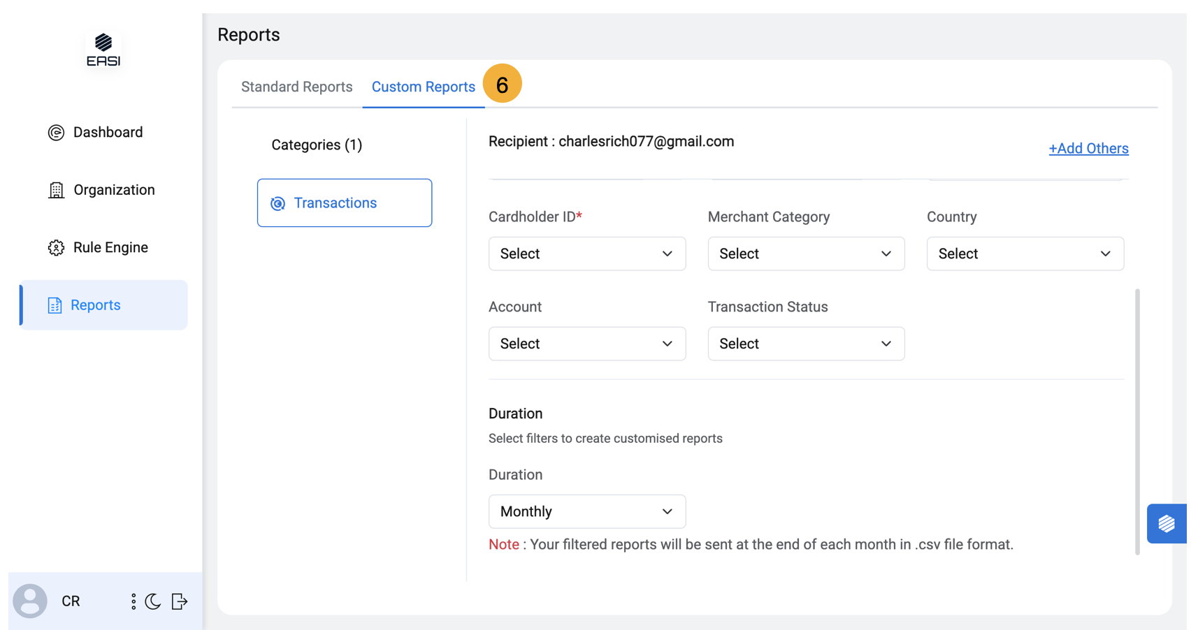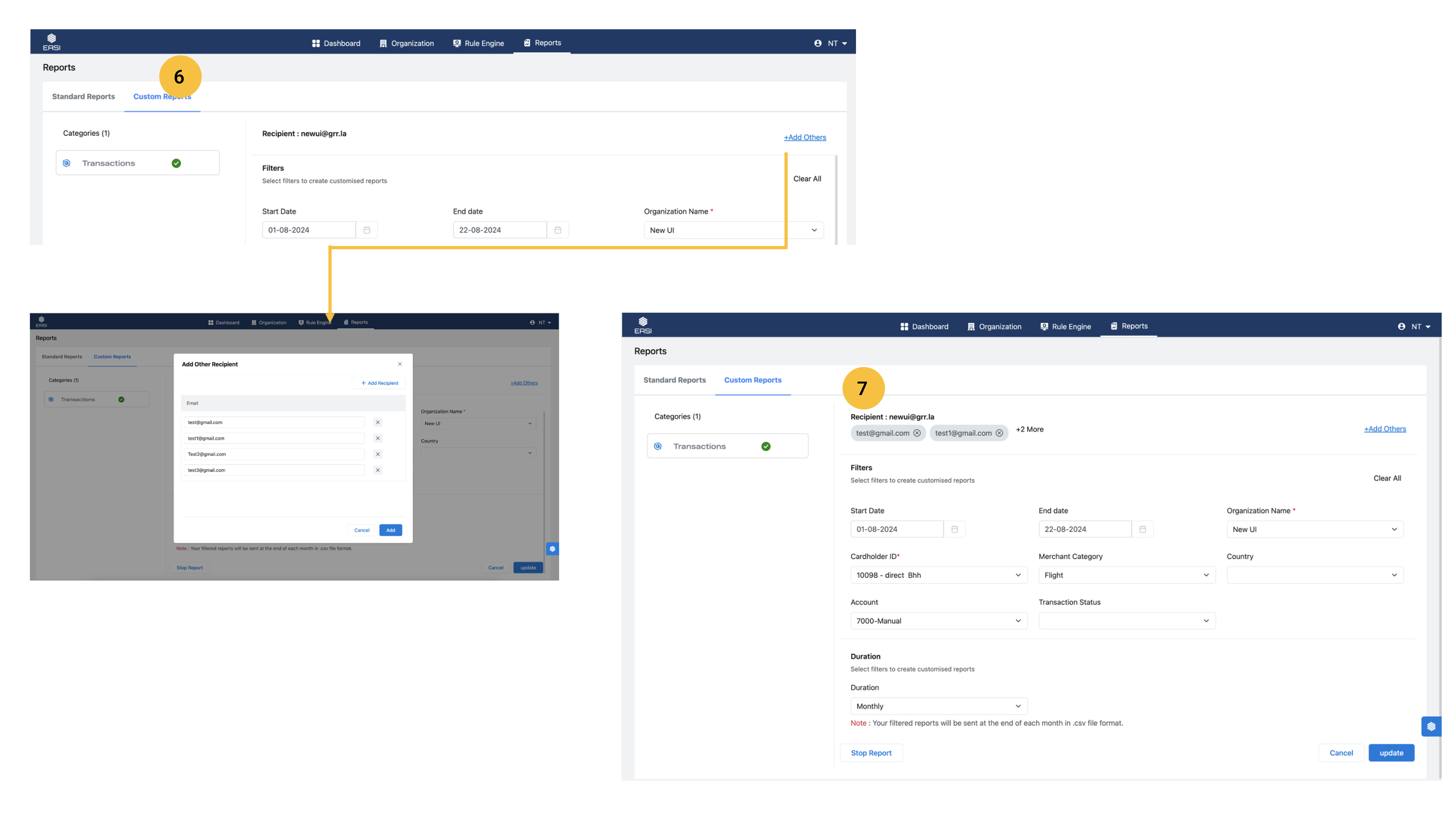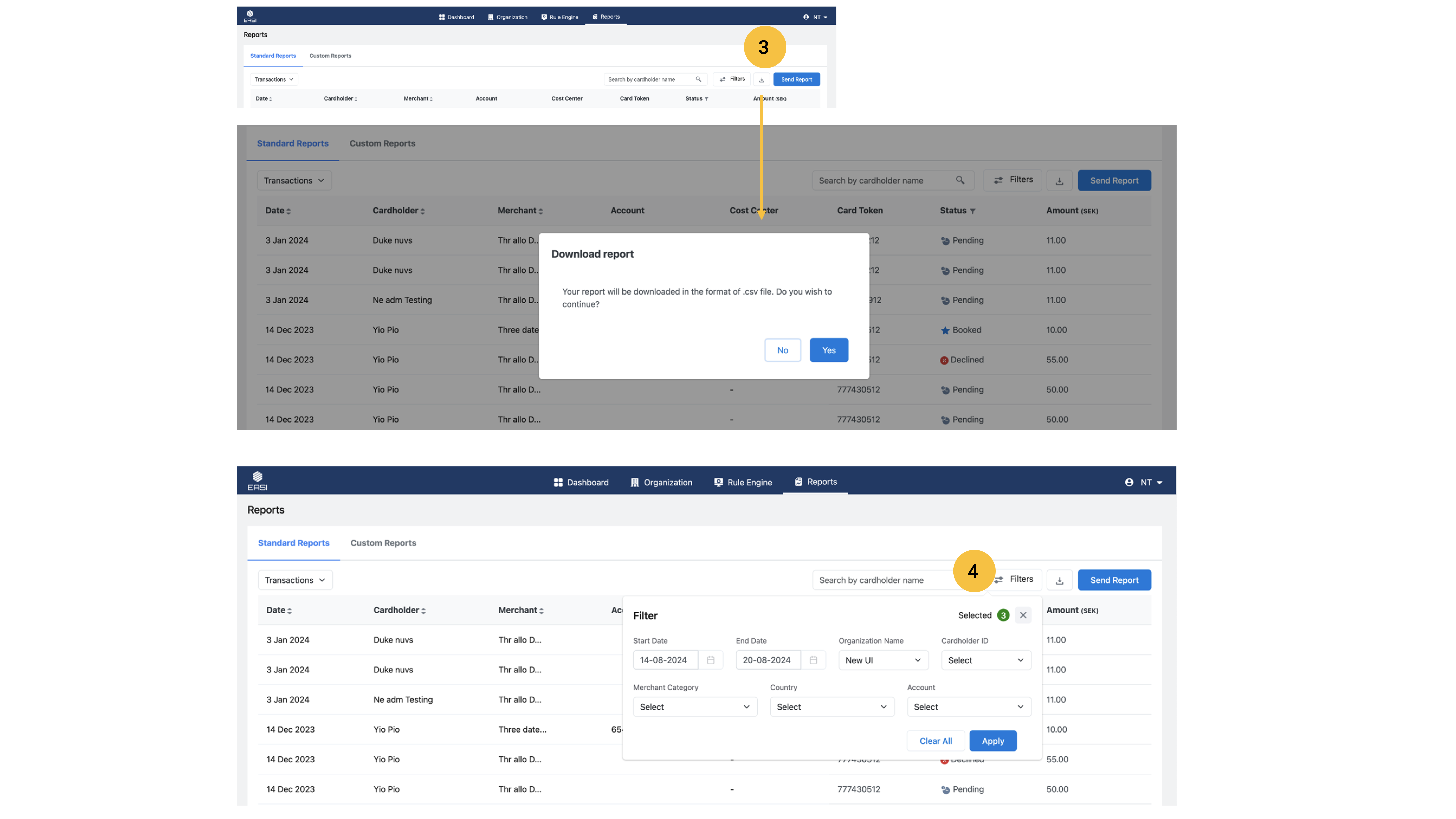 1. In Reports page, the transaction details can be viewed and sent to other admins or users within the organization as needed.